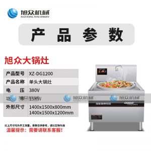 XZ-DG1200-大鍋灶,商用大鍋灶、猛火效率高。適用于酒店/食堂/工地炒菜,均勻翻炒,快速出菜工程可定制。勁爆翻炒快速出菜輕松解決百人用餐,人多也不怕。八檔磁控輕松控溫根據需求調節(jié),操作簡單,效率更出眾。