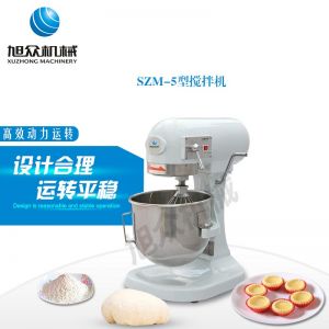 SZM-5型攪拌機(jī),可用于攪拌奶油、蛋糕液、餡料及和制面團(tuán)等操作。打蛋攪拌機(jī)等作攪拌食料、揉和面團(tuán)之用,是生產(chǎn)優(yōu)質(zhì)糕點(diǎn)的理想設(shè)備,適用于酒店、飯店、學(xué)校部門(mén)、面包屋以及食品廠家。