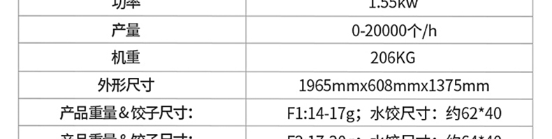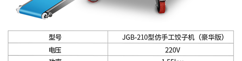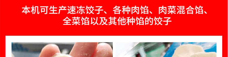 210豪華餃子機(jī),實(shí)力強(qiáng)勁、超高效率一小時(shí)可做大約20000個(gè)餃子!可生產(chǎn)速凍餃子、各種肉餡、肉菜混合餡、全菜餡以及其他種餡的餃子。