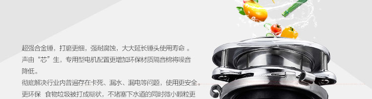 ACLQ37-廚房垃圾處理器,采用先進(jìn)的研磨系統(tǒng),采用特殊合金錘粉技術(shù),能根據(jù)垃圾的強(qiáng)度,自動調(diào)節(jié)工作位置,處理垃圾的范圍和細(xì)度優(yōu)良。能夠有效地將食物垃圾研磨成細(xì)小顆粒,直接從下水管道排出,從而實現(xiàn)及時方便快捷的廚房清潔,滿足現(xiàn)代健康家居的要求。