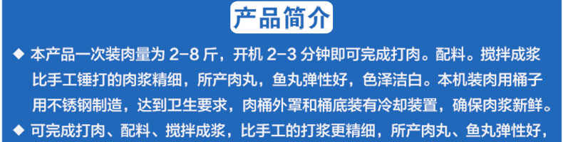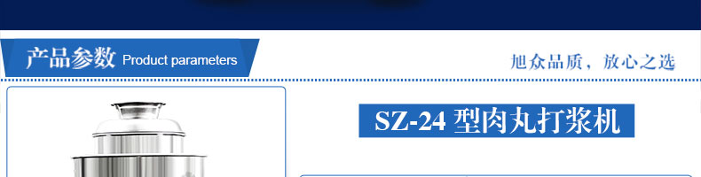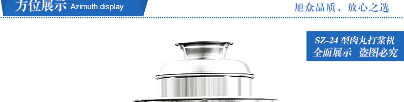 SZ-24型高速肉丸打漿機,高速肉丸打漿機選用不銹鋼,生產(chǎn)過程中改善了肉質(zhì)脂肪纖維,生產(chǎn)出的丸子外表光滑細膩、低脂、口感爽脆、彈性好、韌性好,是潮州肉丸的專用打漿機。