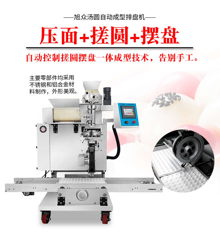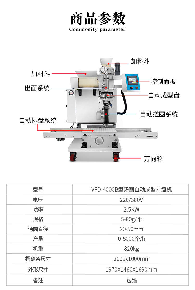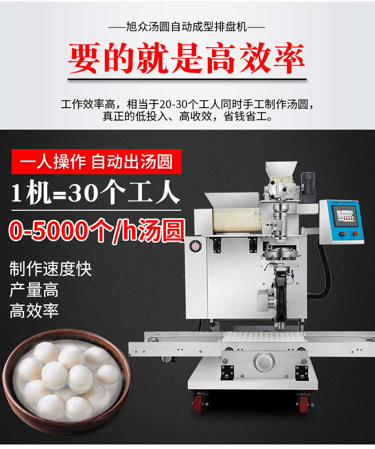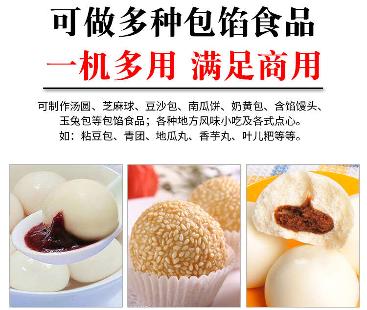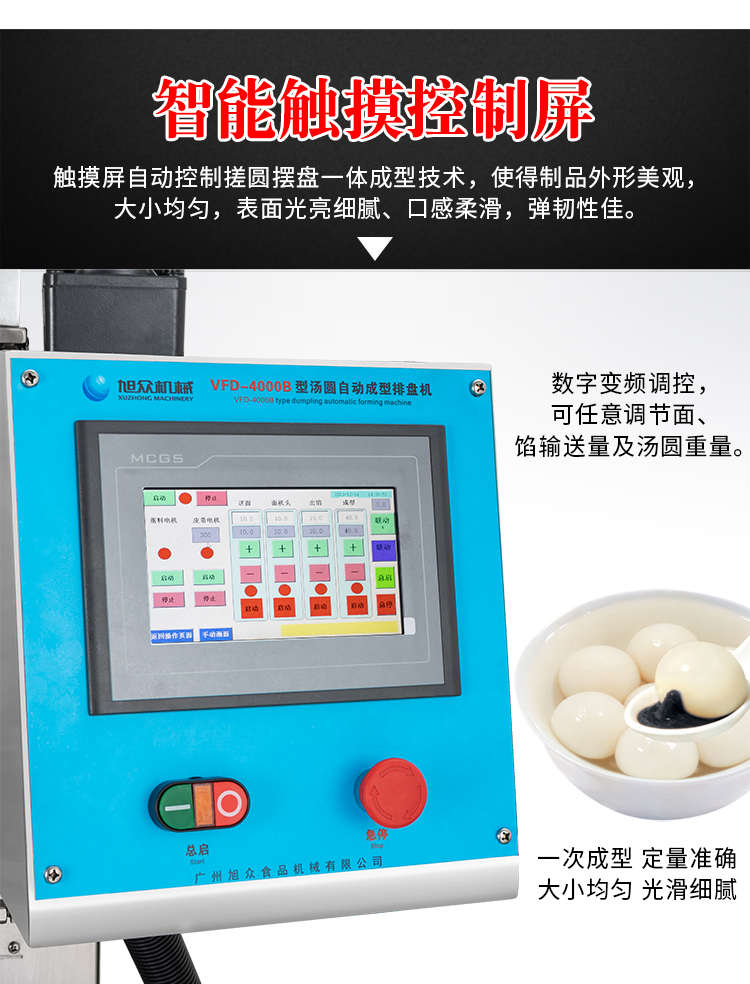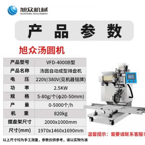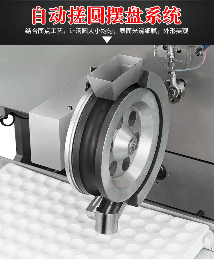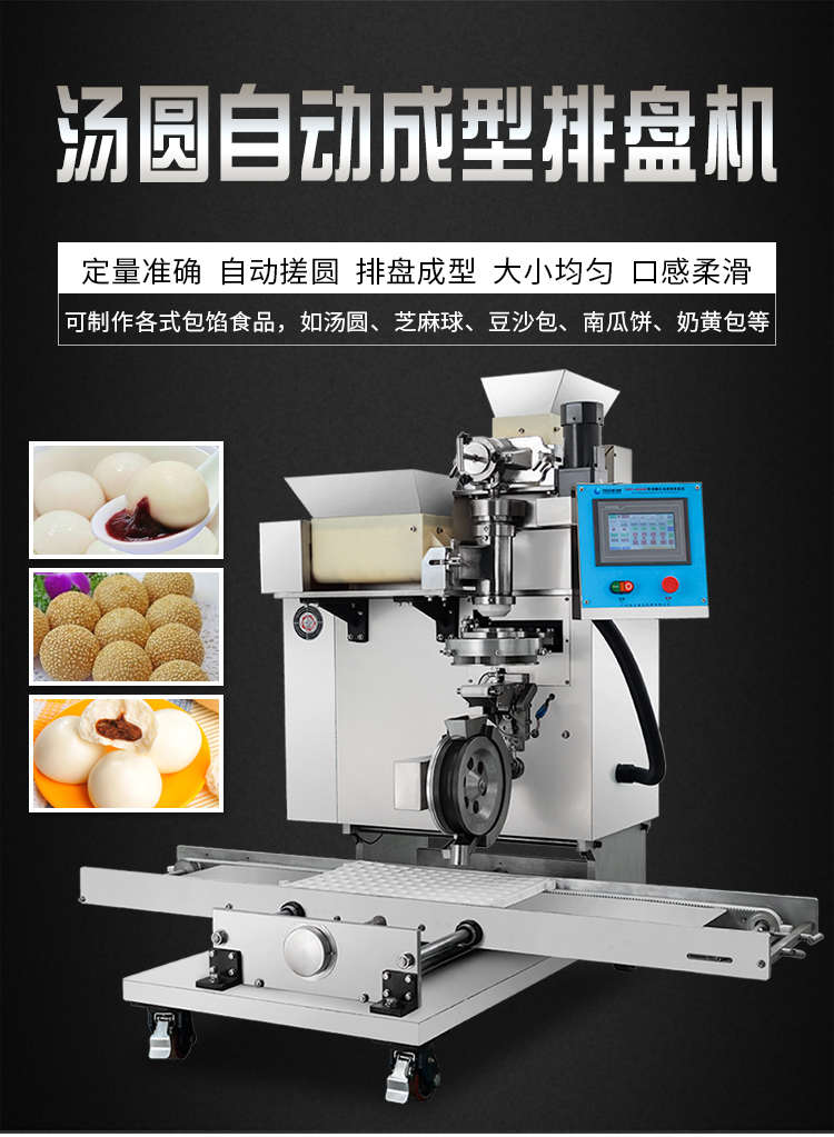 VFD-4000B湯圓機(jī),定量準(zhǔn)確自動搓圓排盤成型大小均勻口感柔滑??芍谱鞲魇桨W食品,如湯圓、芝麻球、豆沙包、南瓜餅、奶黃包等