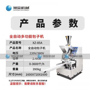名稱XZ-85A全自動包子機(jī) 電源220/380v 功率2.4kw 產(chǎn)量 尺寸1600*720*1600mm 重量390kg 規(guī)格20-150克/只 其他