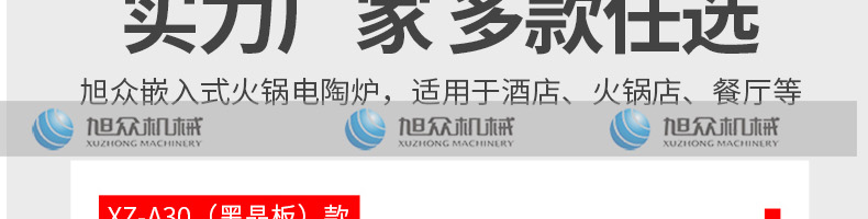 嵌入式電陶爐XZ-A30,實力廠家·采用高品質(zhì)零配件。廠家直銷,售后無憂。廣州旭眾食品機械有限公司是集研發(fā)設計、生產(chǎn)銷售于一體的現(xiàn)代化企業(yè)。一站式購機,無中間差價。