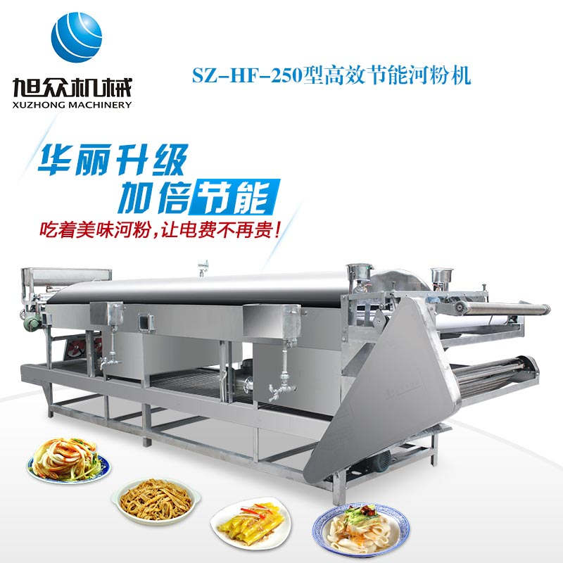 SZ-HF-250高效節(jié)能河粉機(jī),采用直熱式加溫,升溫快、油耗低,比普通河粉機(jī)節(jié)能40%以上