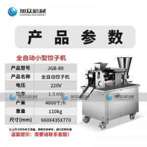 名稱80餃子機 電源220v 功率1.5kw 產(chǎn)量4800個/h 尺寸660*435*770mm 重量110kg 規(guī)格15-18g/個 其他