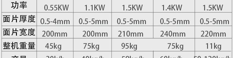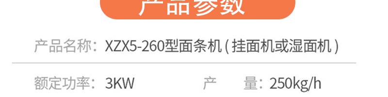 名稱MT260-5多功能面條機(jī) 電源 功率3kw 產(chǎn)量200kg/h 尺寸1800*620*1400mm 重量560kg 規(guī)格 其他