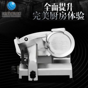 臺式半自動切片機,適合切無骨肉類和其他類似榨菜帶有彈性的食物,把原材料肉切成肉片,并可自動成卷狀??汕信H馄?、羊肉片等