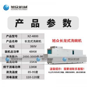 XZ-4800長龍式洗碗機(jī),碗如新生,旭眾長龍式洗碗機(jī)。環(huán)繞噴淋技術(shù)繞體循環(huán)用水/油污分離快速潔凈。食品級304不銹鋼堅固耐用,耐高溫抗腐蝕,易于清洗,安全有保障。