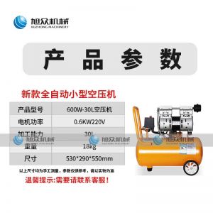 名稱空壓機(jī) 電源220v 功率0.6kw 產(chǎn)量30l 尺寸530*290*550mm 重量18kg 規(guī)格 其他